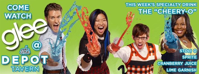 Gleeks unite at The Depot November 22, 2010November 22, 2010 Come watch Glee on our patio on Tuesday 11/23 at 7:00PM – November sweeps rolls on! This week’s specialty drink: The Cheery-O Stoli O, Sprite, Cranberry Juice, Lime Garnish … $4