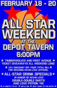 In honor of Minnesota’s All-Star Kevin Love, we’ve concocted some specialty drinks. We’ll be serving up Double-Double shots and Love Potion #42 cocktails.