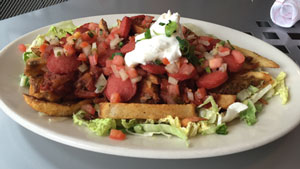 House-Cut Fries Seasoned with Cajun Spices, Served with Mini Hot Dog Curls. All Served over Fresh Chopped Lettuce, Topped with Sour Cream, and Pico de Gallo